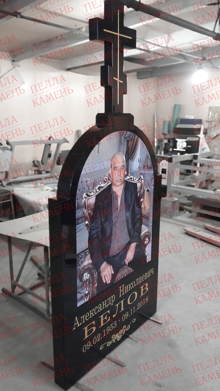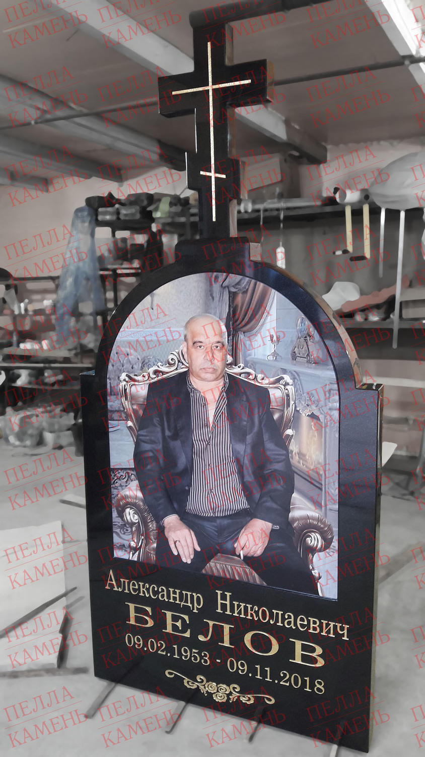Итак, общая высота памятника на подставке 254 см.! Размер цветной керамики 100х60 см. На позолоту надписи и креста было потрачено примерно 35 листов сусального золота. Заказ был сдан в срок с надлежащим качетвом изготовления.